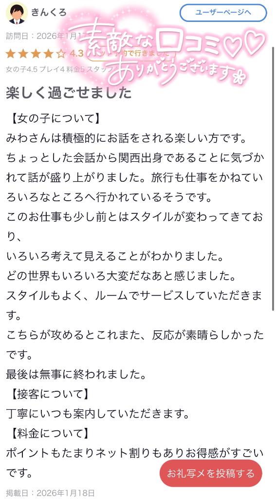 みわ 23歳 【お礼写メ日記】💕 01/20 19:07