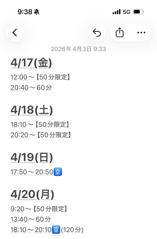 4/17〜4/20すでにご新規様、本指名様共に姫予約可能です